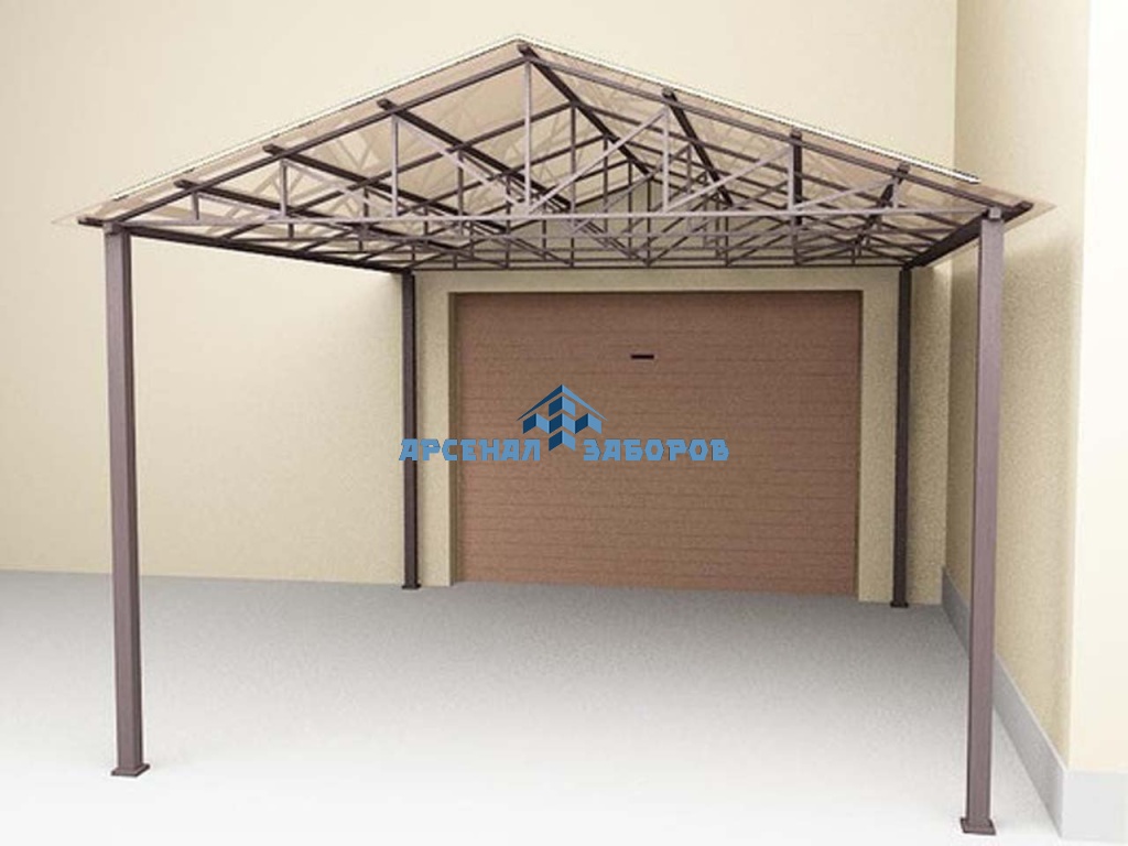 Стандартные характеристики каркаса навеса: столбы 80х80х3мм.