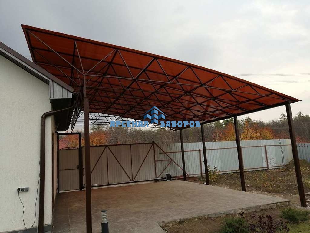 Стандартные характеристики каркаса навеса: столбы 80х80х3мм.