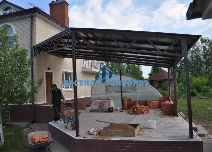 Мы готовы установить выбранный вами вид навеса по приемлемой цене. Материал вы подбираете сами. Количество материала для конкретного заказа можно узнать по нашему телефону. Произвести точный расчет материала может и наш менеджер, которого возможно пригласить для замера.